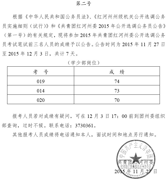 2015共青團(tuán)云南紅河州委公務(wù)員選調(diào)公告(第二號(hào))