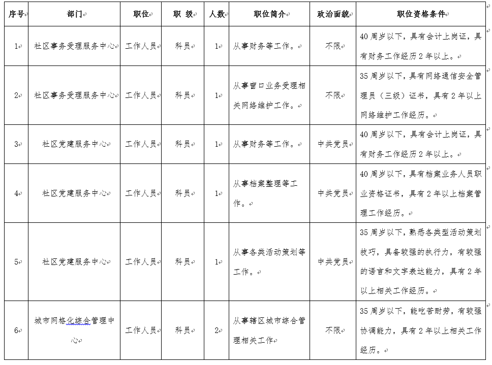 九里亭街道事業(yè)單位工作人員招錄崗位職位說明