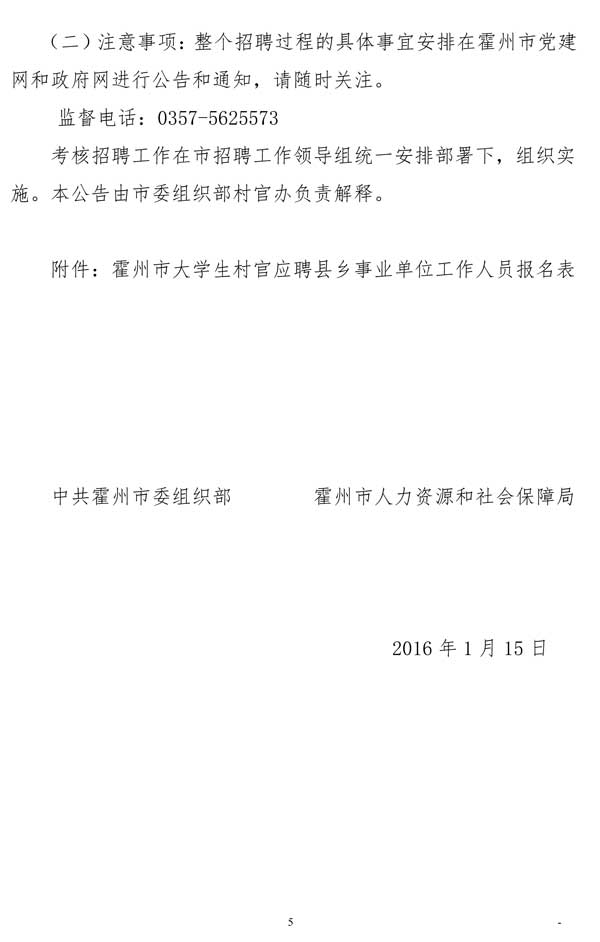 2016山西霍州市縣鄉(xiāng)事業(yè)單位招聘17人公告(從大學(xué)生村官中)【招17人】