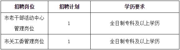 因工作需要,市委老干部局擬招聘2名工作人員?,F(xiàn)將有關(guān)事項公告如下: