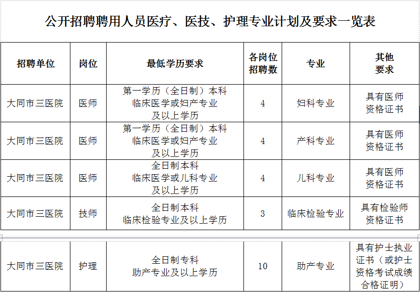 醫(yī)療專業(yè)12人、助產(chǎn)專業(yè)10人、醫(yī)技專業(yè)3人(詳見(jiàn)附件):