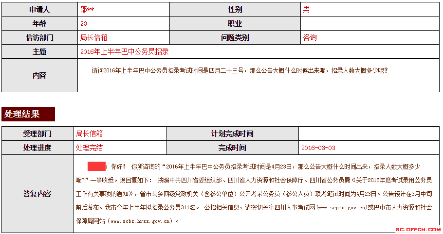 2016年上半年巴中市擬公開考試錄用公務(wù)員311名