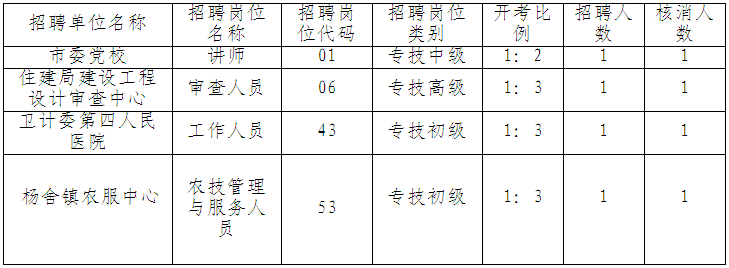 2016年張家港市部分事業(yè)單位公開招聘工作人員報(bào)名工作已經(jīng)結(jié)束,根據(jù)簡(jiǎn)章規(guī)定,對(duì)下列因無人報(bào)名或未達(dá)到開考比例的招聘崗位進(jìn)行核消,具體職位公告如下: