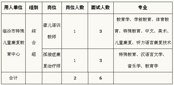 2016山西臨汾市特殊兒童康復(fù)教育中心招聘面試公告