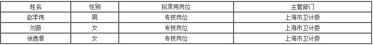 我單位根據(jù)《上海市事業(yè)單位公開招聘人員暫行辦法》【滬人社專發(fā)(2009)45號】的要求,擬錄用以下同志,現(xiàn)將有關(guān)情況予以公示。公示期間,如有異議,請向我單位反映。