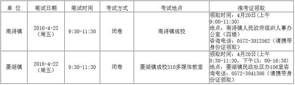 2016浙江湖州市南潯鎮(zhèn)、菱湖鎮(zhèn)社區(qū)專職工作者招聘筆試時間、地點通知