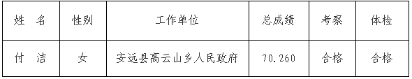 根據(jù)《贛州市國土資源局下屬事業(yè)單位面向全市機關(guān)事業(yè)單位公開考選工作人員公告》,經(jīng)過報名、資格審查、筆試、面試、考察、體檢等程序,經(jīng)研究,確定付潔同志為贛州市國土資源局下屬事業(yè)單位公開考選工作人員擬遞補錄用人員,現(xiàn)予公示。