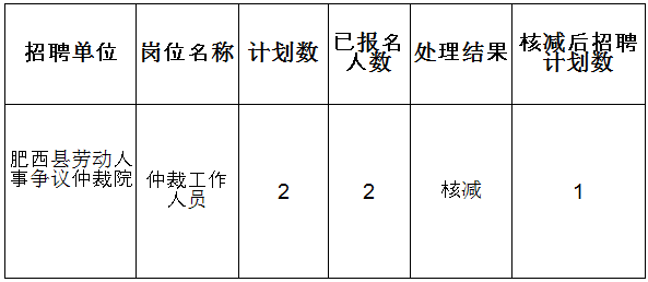 2016安徽肥西縣勞動(dòng)人事?tīng)?zhēng)議仲裁院選調(diào)崗位核減情況公告