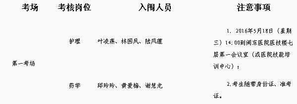 閩東醫(yī)院2016年上半年公開(kāi)招聘工作人員專(zhuān)業(yè)技能考核為第一組0032護(hù)理,第二組0033藥學(xué),第一組、第二組均在第一考場(chǎng)。專(zhuān)業(yè)技能考核為專(zhuān)業(yè)技能操作1題,相關(guān)專(zhuān)業(yè)知識(shí)測(cè)試2題。