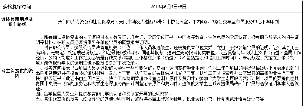 2016湖北天門市公務(wù)員考試錄用資格復審公告