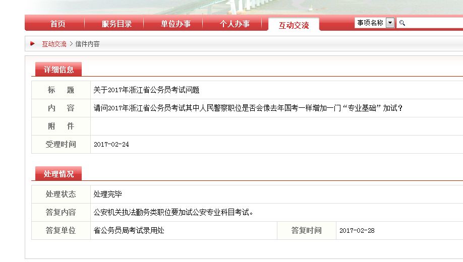 圖二:2017年浙江公務(wù)員考試公安機(jī)關(guān)類要加試公安專業(yè)科目考試