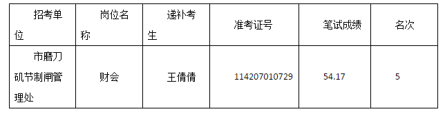 鄂州市水務(wù)系統(tǒng)2016年事業(yè)單位公開(kāi)招聘資格復(fù)審,因第4名考生許瑩放棄資格復(fù)審,根據(jù)《鄂州市事業(yè)單位2016年度公開(kāi)招聘工作人員公告》有關(guān)規(guī)定,在報(bào)考同一崗位考生中按照筆試成績(jī)從到低分依次遞補(bǔ)的原則,遞補(bǔ)以下考生為資格復(fù)審人選: