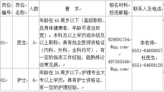 1、報(bào)名:凡符合條件且有意應(yīng)聘者,請(qǐng)將身份證、學(xué)歷學(xué)位證書、職稱證書、執(zhí)業(yè)醫(yī)師資格證或護(hù)士資格證等相關(guān)應(yīng)聘材料(pdf格式)和《安徽職業(yè)技術(shù)學(xué)院工作人員(勞務(wù)派遣)應(yīng)聘報(bào)名表》(見附件,doc格式)發(fā)送至聯(lián)系人電子郵箱,報(bào)名截止時(shí)間為2016年8月8日。