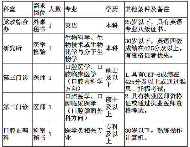昆明醫(yī)科大學(xué)附屬口腔醫(yī)院(云南省口腔醫(yī)院)是云南省規(guī)模、設(shè)備、技術(shù)力量最雄厚的三級(jí)口腔??漆t(yī)院,因醫(yī)療業(yè)務(wù)發(fā)展需要,特向社會(huì)誠聘工作人員,現(xiàn)將有關(guān)事項(xiàng)告示如下: