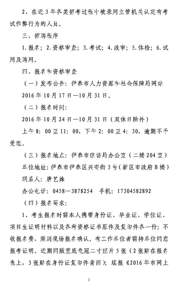 2016黑龍江伊春市網(wǎng)上信訪受理中心招聘公告【招3人】
