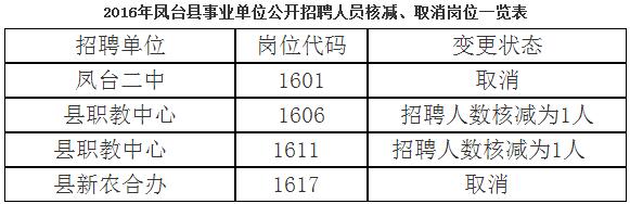 原標(biāo)題:關(guān)于2016年鳳臺縣事業(yè)單位公開招聘人員核減、取消崗位的通知