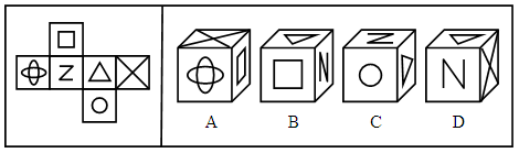 例題:下圖折疊為正方體后,不可能成為右圖中的______。