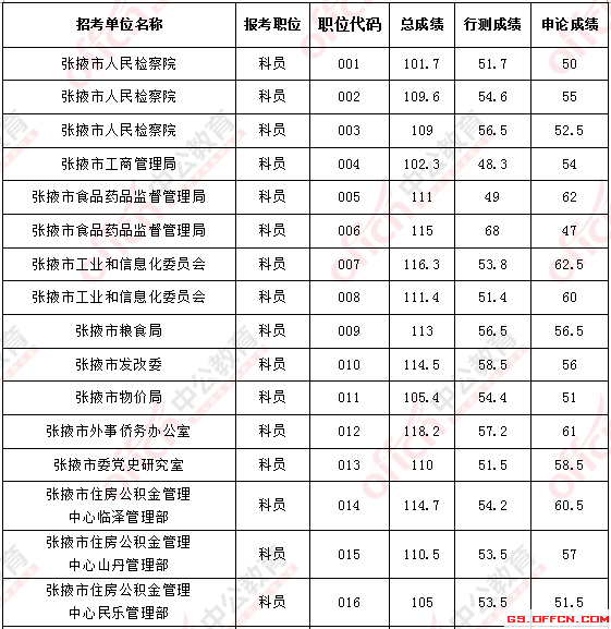 2017年甘肅張掖公務員面試入圍最低分數(shù)線