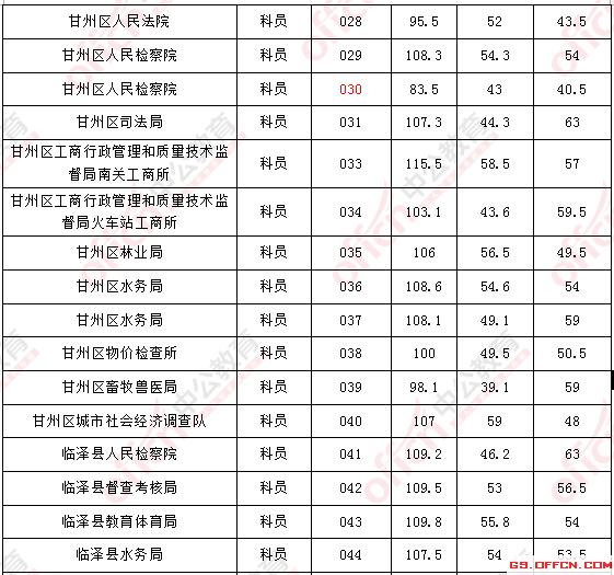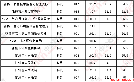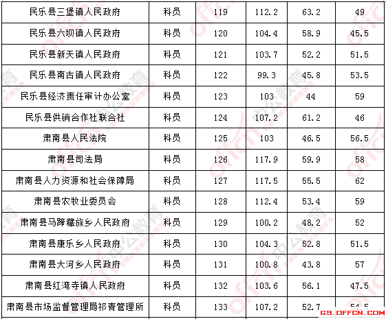 溫馨提示:根據(jù)甘肅省公務員考試招錄公告得知,甘肅省公務員面試人員確定方式為招錄單位在資格復審的基礎上,根據(jù)應試人員筆試總成績從到低分的順序確定參加面試人員(筆試有一門缺考或一門成績?yōu)榱阏撸坏么_定為面試人選)。省、市州考錄辦分別按職位筆試成績,從到低分的順序,依次按計劃招錄人數(shù)與面試人數(shù)1∶3的比例確定面試人員。所以并沒有實際意義上的分數(shù)線,以下內(nèi)容僅供參考。