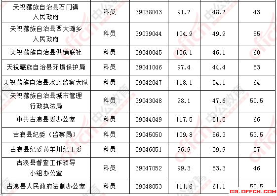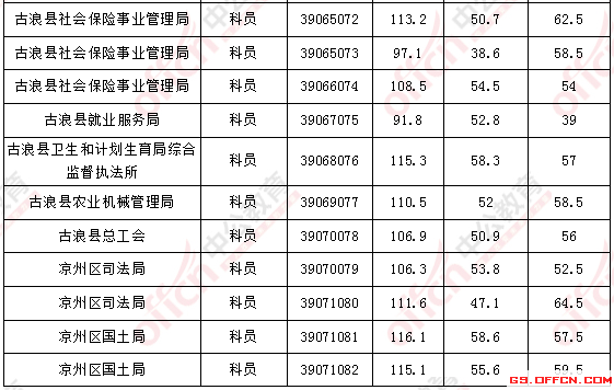 溫馨提示:根據(jù)甘肅省公務(wù)員考試招錄公告得知,甘肅省公務(wù)員面試人員確定方式為招錄單位在資格復(fù)審的基礎(chǔ)上,根據(jù)應(yīng)試人員筆試總成績從到低分的順序確定參加面試人員(筆試有一門缺考或一門成績?yōu)榱阏?,不得確定為面試人選)。省、市州考錄辦分別按職位筆試成績,從到低分的順序,依次按計劃招錄人數(shù)與面試人數(shù)1∶3的比例確定面試人員。所以并沒有實際意義上的分數(shù)線,以下內(nèi)容僅供參考。