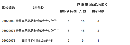 因繳費人數(shù)為1人,取消榮縣食品藥品監(jiān)督稽查大隊職位二(26020070)。