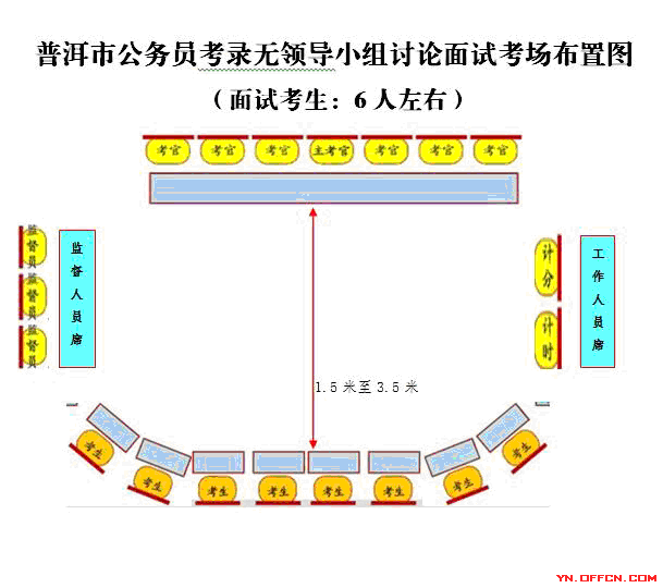 (3)每個面試考場人員安排為考官7人(主考官1人,其他考官6人,面試考場成立面試考官小組,主考官為面試考官小組組長),計(jì)分2人,引導(dǎo)員1人,人大監(jiān)督員1人,政協(xié)監(jiān)督員1人,考生一般每個考場每輪8人左右。