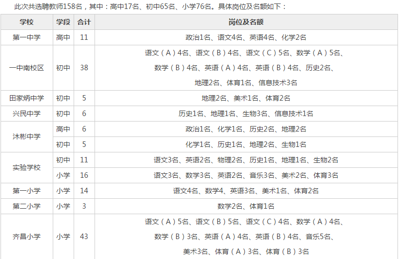 教師考試網(wǎng)校備考群:457858428為城區(qū)教育教學(xué)工作的正常開展,按照《興寧市城區(qū)部分中小選聘教師的有關(guān)規(guī)定》(興教[2014]49號(hào)),現(xiàn)將2017年暑期城區(qū)10所中小選聘教師相關(guān)事項(xiàng)公告如下: