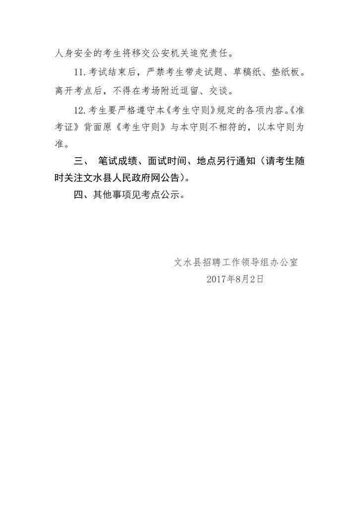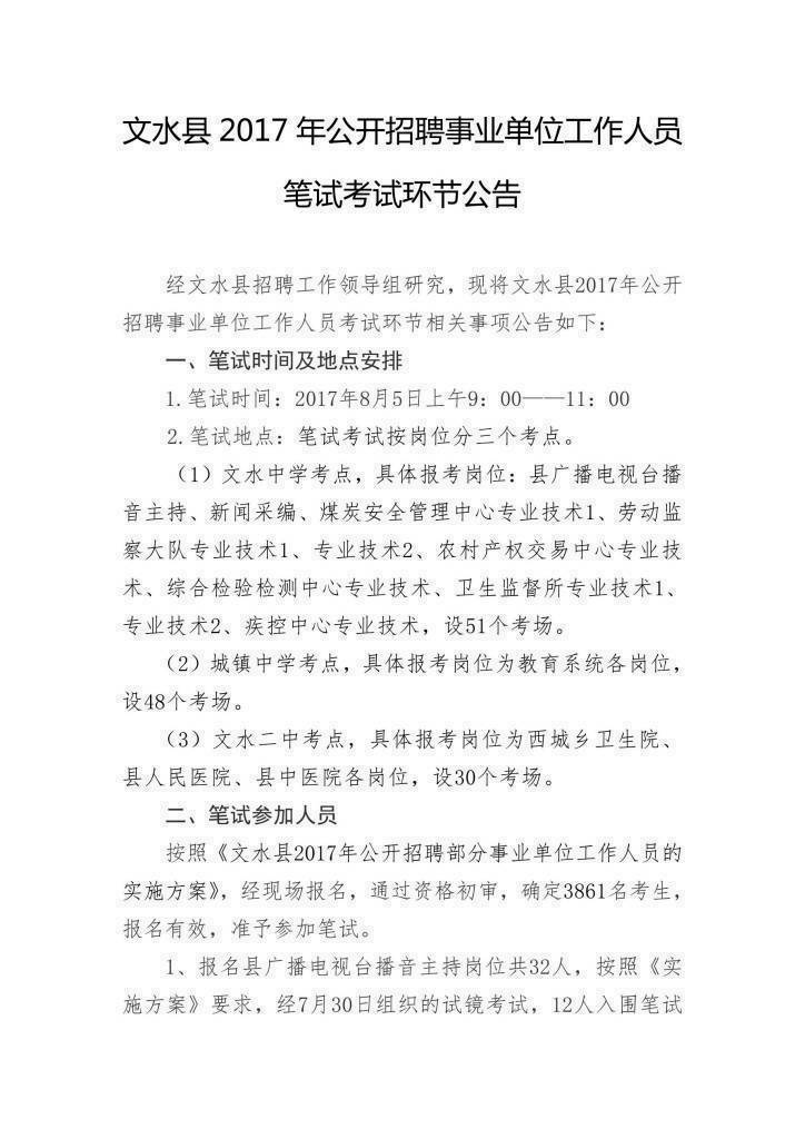 2017山西文水縣事業(yè)單位招聘筆試考試公告