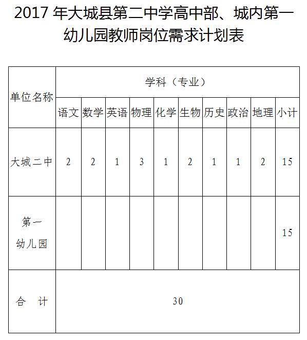 2017河北大城縣二中高中部、第一幼兒園招聘教師公告【招30人】
