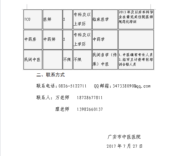 2017四川廣安市中醫(yī)醫(yī)院招聘公告