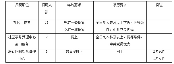 2、熱愛社區(qū)工作,有一定組織、管理、協(xié)調(diào)能力;同等條件下,有工作經(jīng)驗(yàn) ;