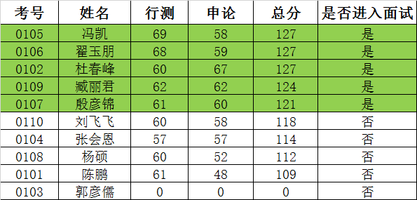 面試采用結(jié)構(gòu)化面試方式進行。面試主要測評考生的言語表達能力、綜合分析能力、專業(yè)素養(yǎng)、個人儀表等。評委打分成績保留到小數(shù)點后二位小有數(shù)字,且不能為0。面試成績?yōu)?位評委分?jǐn)?shù)的平均分,面試滿分為100分。