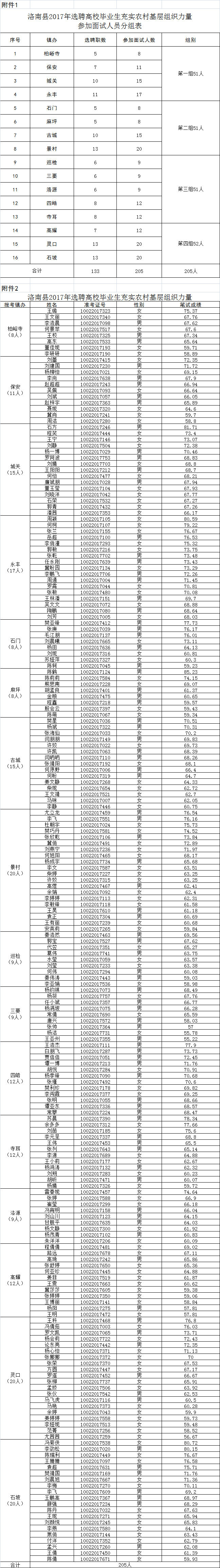 1、2017年洛南縣選聘高校畢業(yè)生充實(shí)農(nóng)村基層組織力量參加面試人員分組表