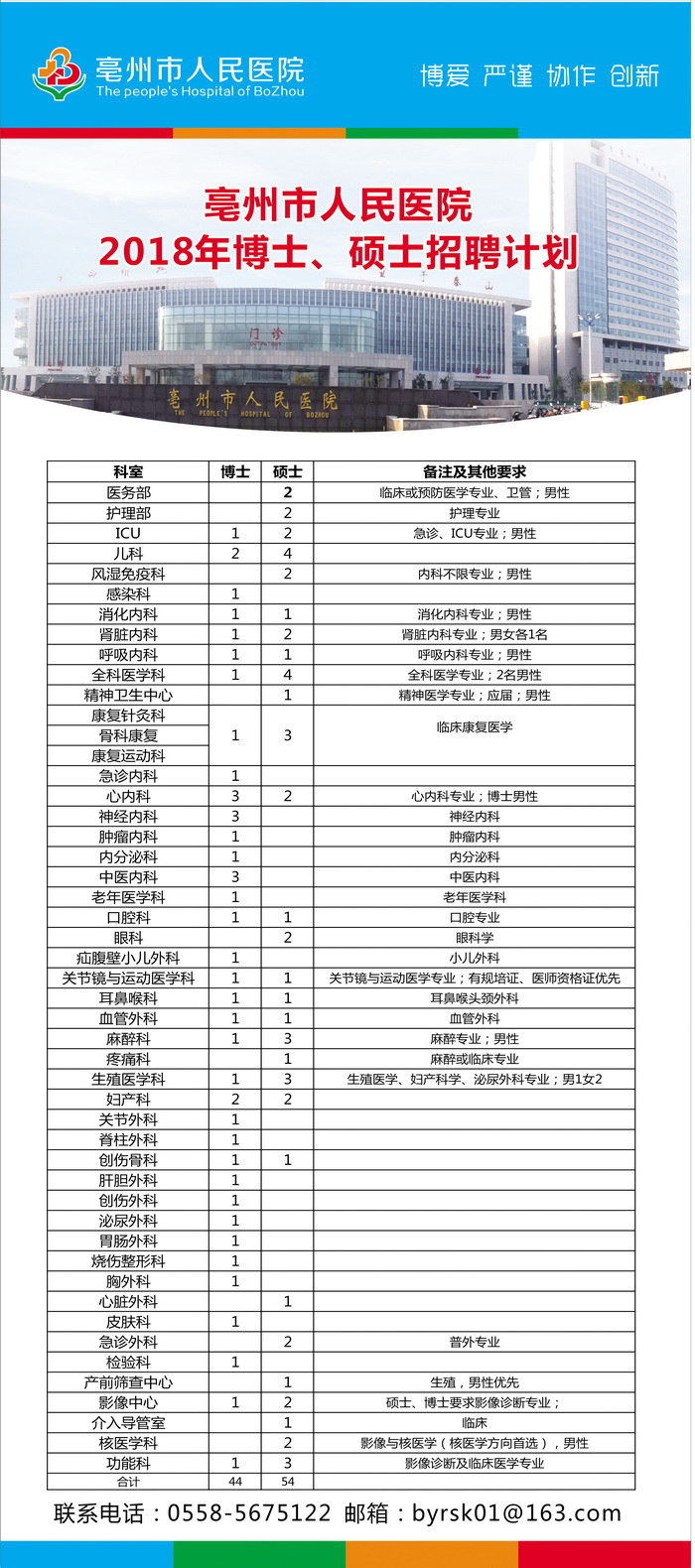 2018安徽亳州市人民醫(yī)院博士碩士招聘公告【招98人】
