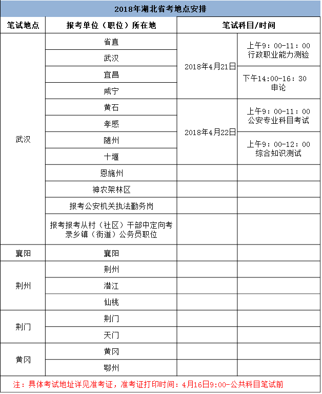 2018年湖北省公務(wù)員考試考點(diǎn)路線_考場分布