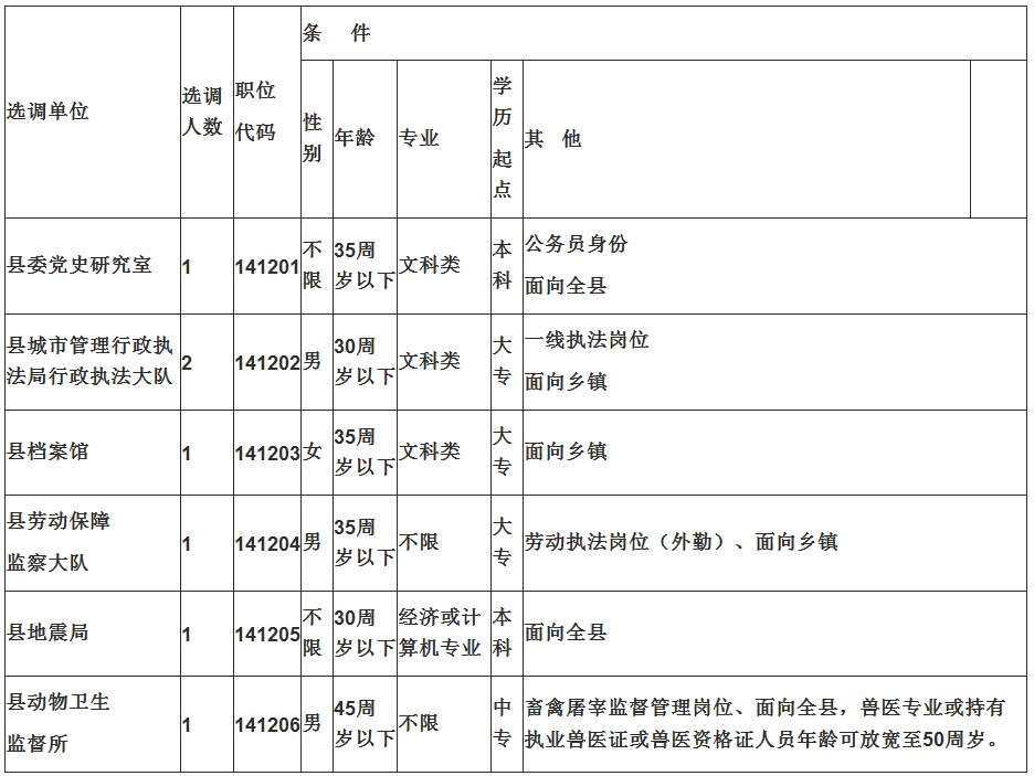 四、選調(diào)條件一覽表