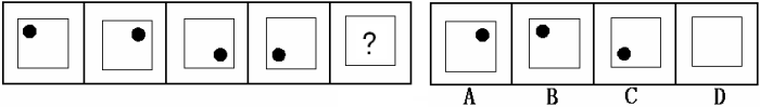 (答案:B。黑點在正方形中順時針移動。在第5個圖形中,應該正好移動到左上角。)