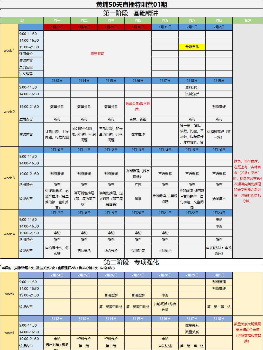 2020年省考直播課程安排表