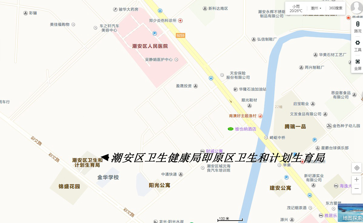 潮州市潮安區(qū)衛(wèi)生健康局,地址:潮州市潮安區(qū)彩文路86號(hào)區(qū)衛(wèi)生健康局(候考室設(shè)一樓)。