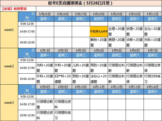 2020聯(lián)考E類直播課課表安排--陜西5月28日開班