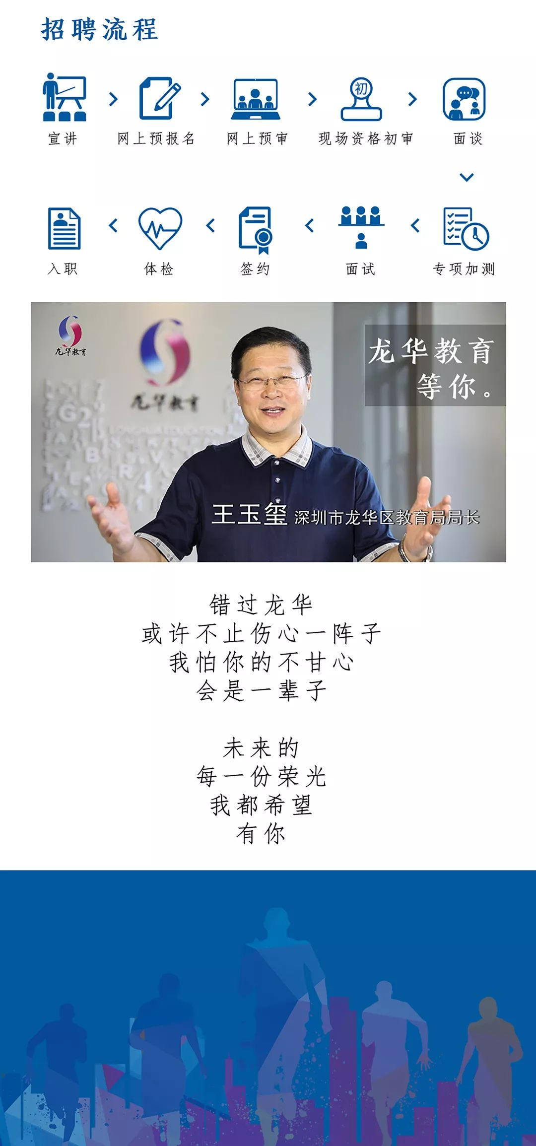 龍華為2017年新成立行政區(qū),各項(xiàng)事業(yè)蓬勃發(fā)展,近3年教育總投入達(dá)120億元,每年新改擴(kuò)建學(xué)校10+,機(jī)會(huì)多多;教師隊(duì)伍整體年輕,高級(jí)教師職稱(相當(dāng)于副教授)職數(shù)存量充足,未來可期。你來了