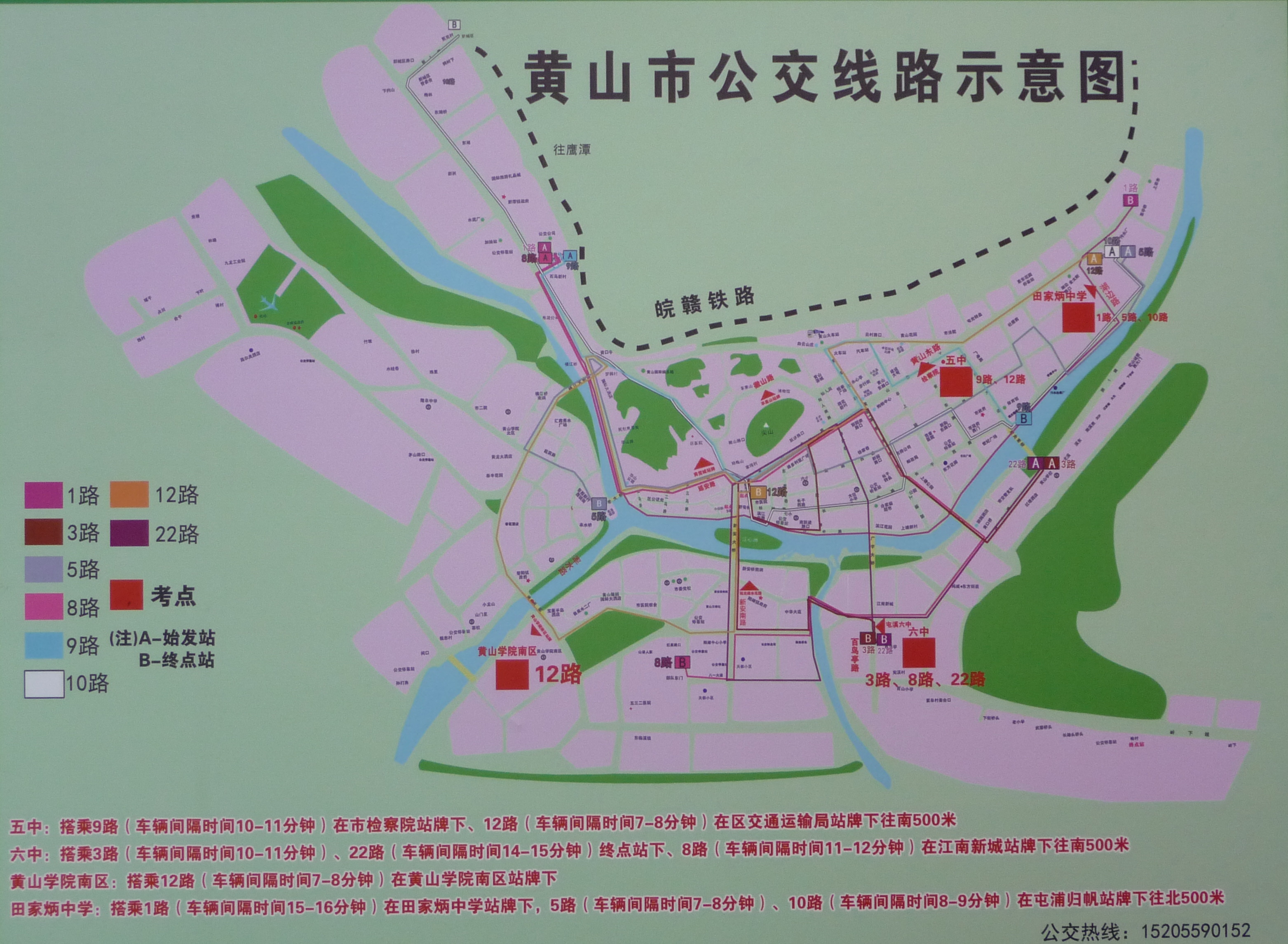 2015年安徽省黃山市公務(wù)員考試筆試考點公交路線示意圖