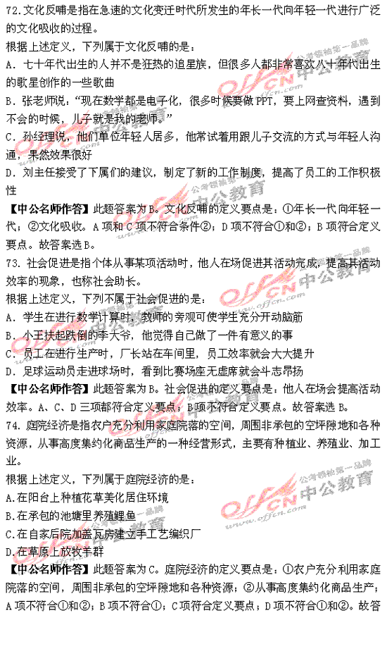 福建省2010年秋季公務(wù)員考試行測(cè)及解析