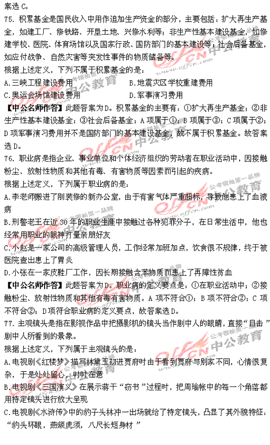 福建省2010年秋季公務(wù)員考試行測(cè)及解析