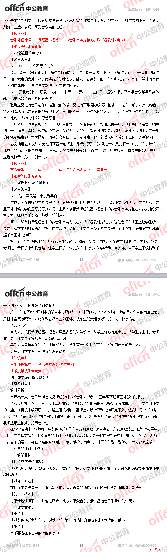 2017年江西教師招聘《小學(xué)音樂》試題答案及解析