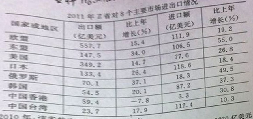 ?、?2010年,Z省一般貿(mào)易的進(jìn)口額不足500億美元