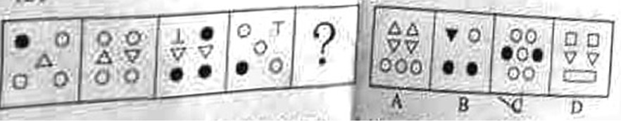 79.從所所給的四個(gè)選項(xiàng)中,選擇最合適的一個(gè)填入問號處,使之呈現(xiàn)一定的規(guī)律性。