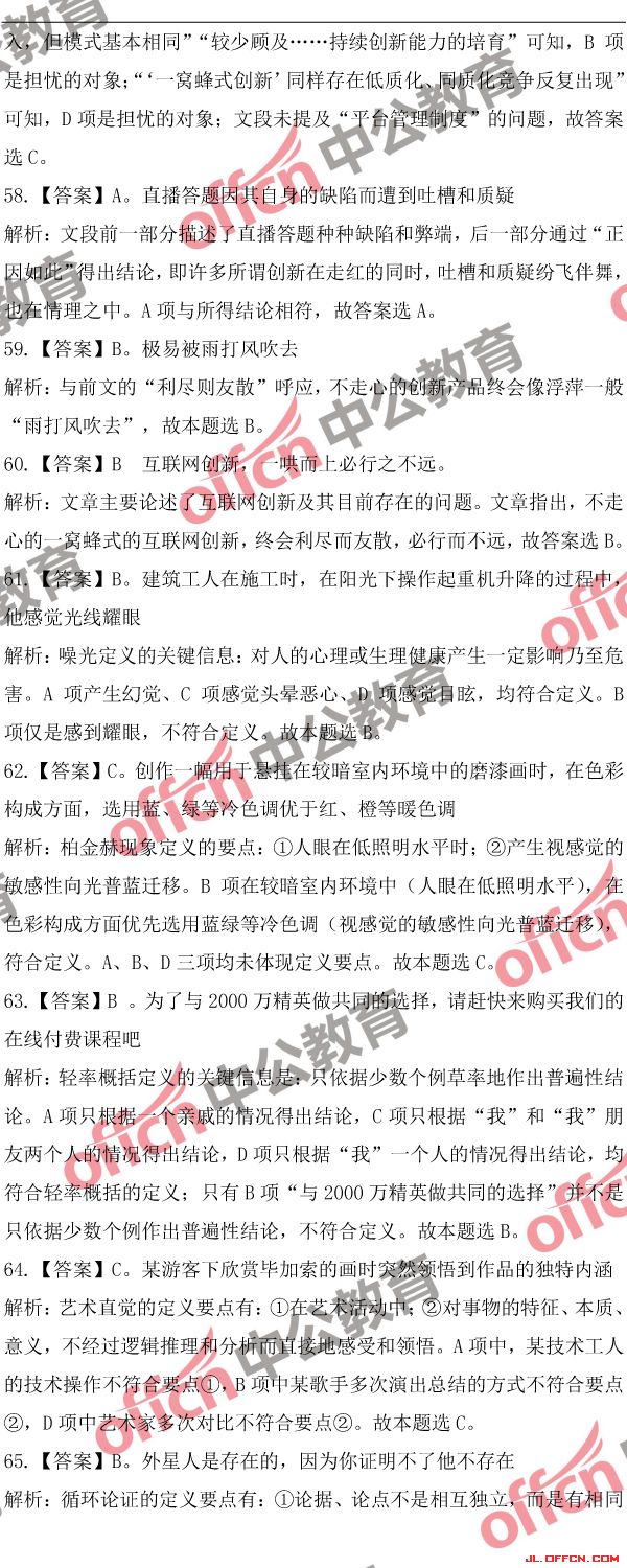 2018吉林公務(wù)員考試行測(cè)(乙)歷年參考答案及解析