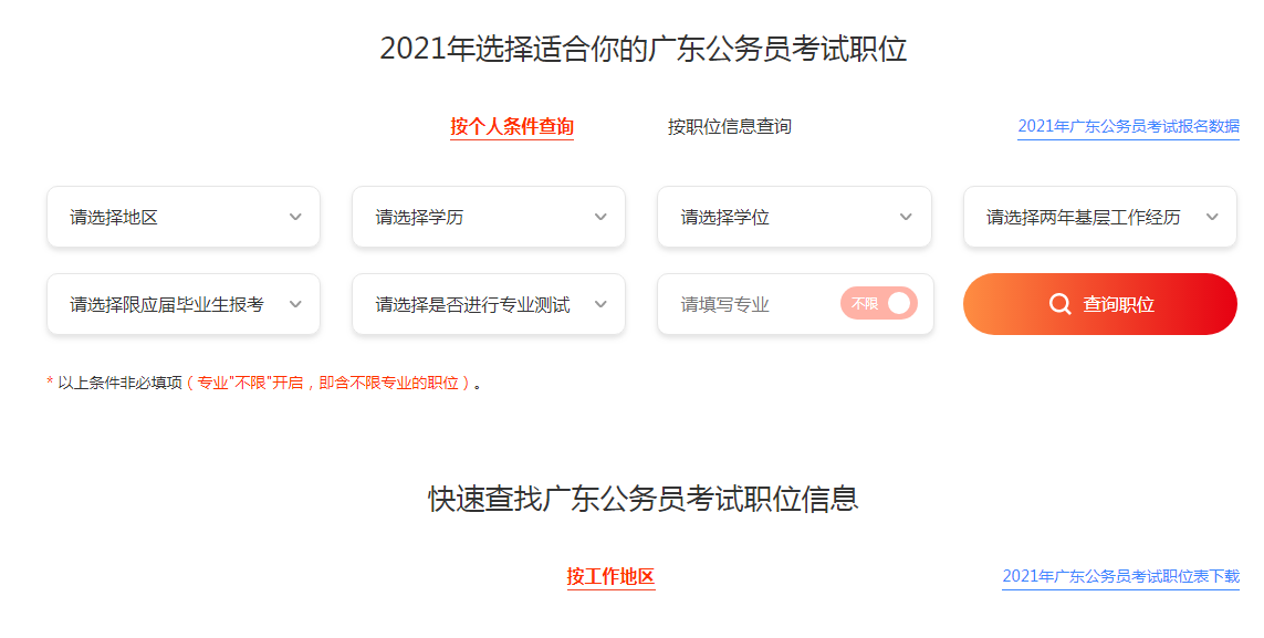 2021廣東省公務(wù)員考試歷年職位表檢索