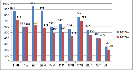 | 臺(tái)州 | 475 | 10.87% | 697 | 11.58% |